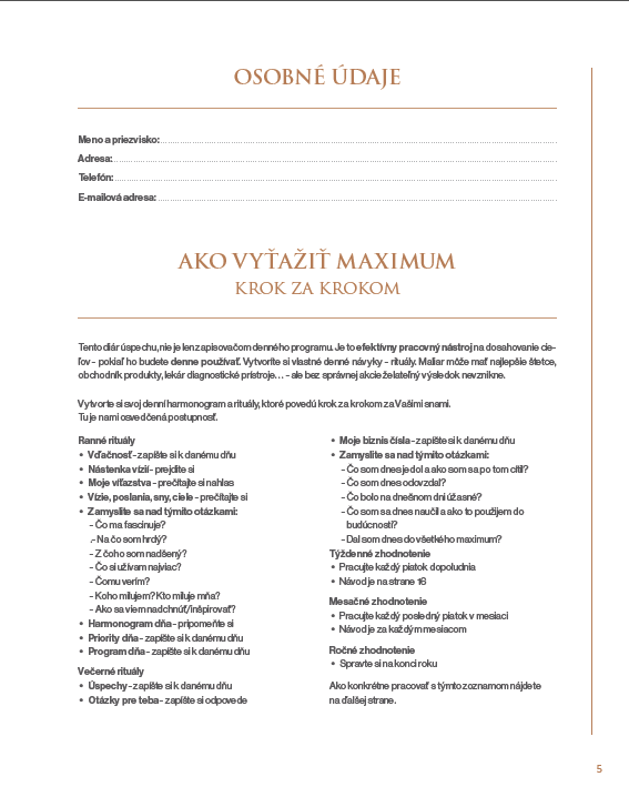 V tom Vás naviac podporí premyslená štruktura Diára veduca k premienaniu vytužených výsledkov v realitu: