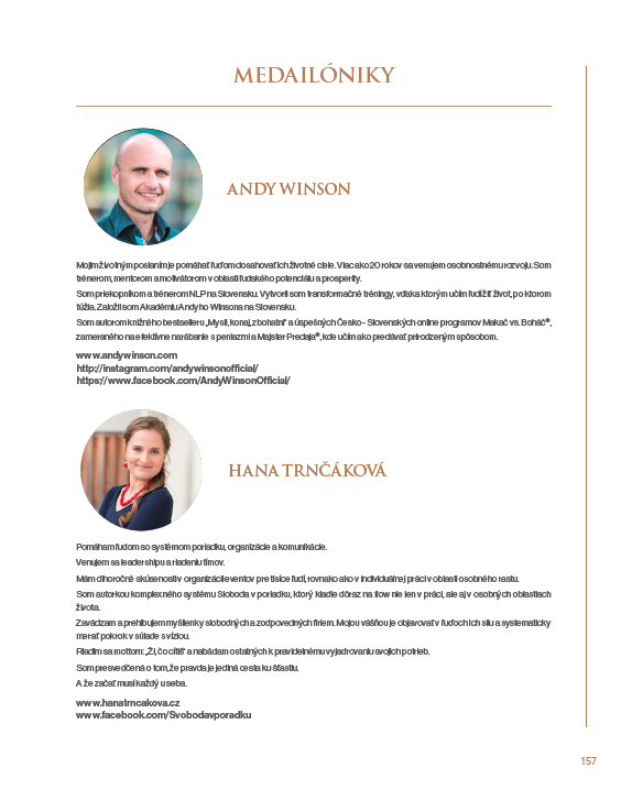 Som autorom knižného bestselleru „Mysli, konaj, zbohatni“ a úspešného Česko - Slovenského online programu Makač vs. Boháč, zameraného na efektívne narábanie s peniazmi.